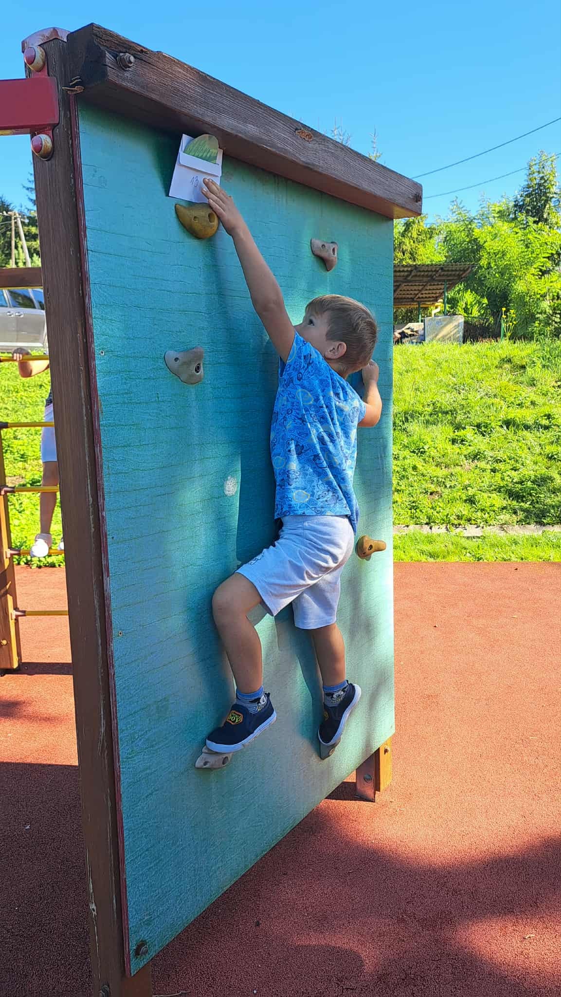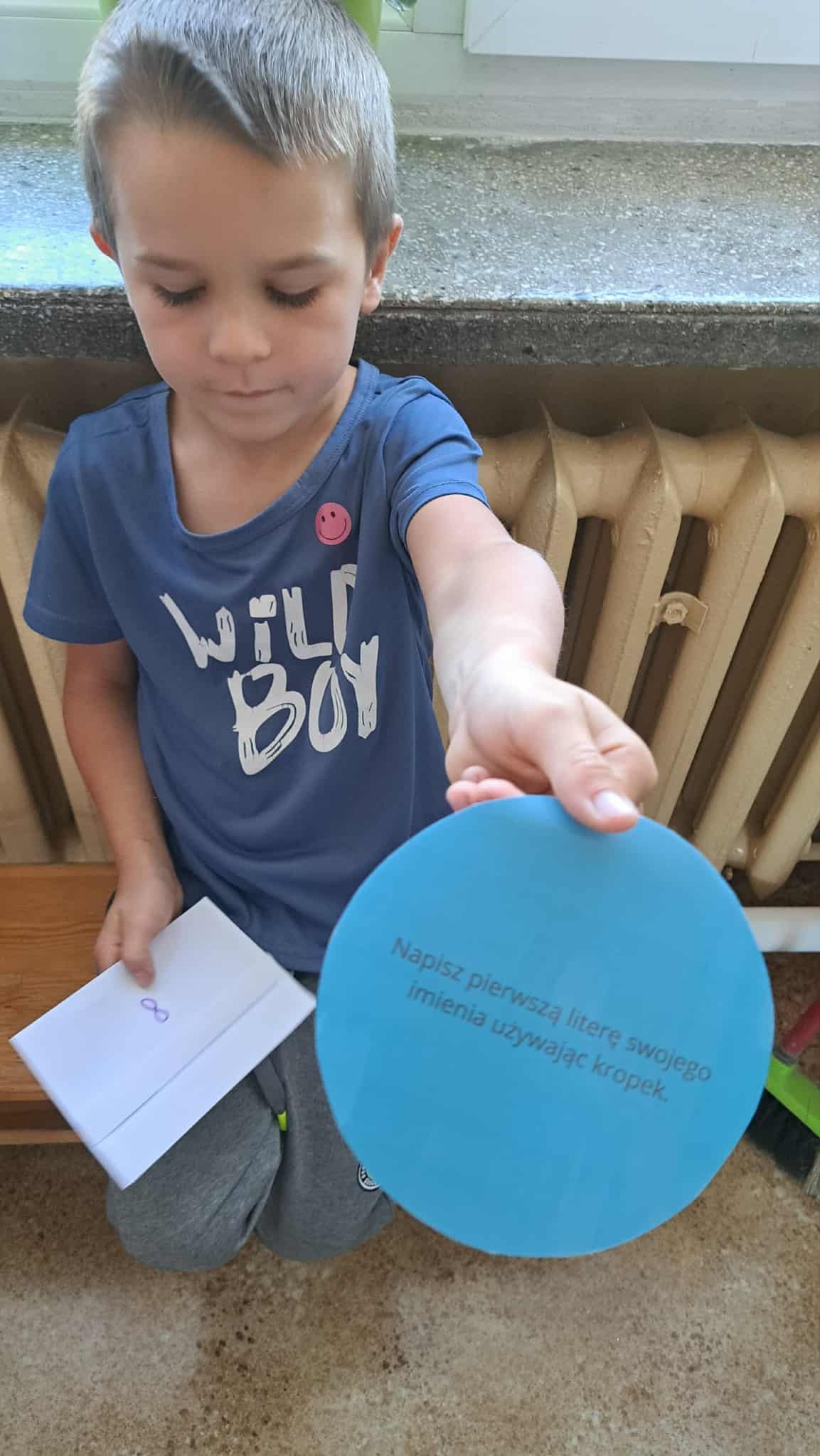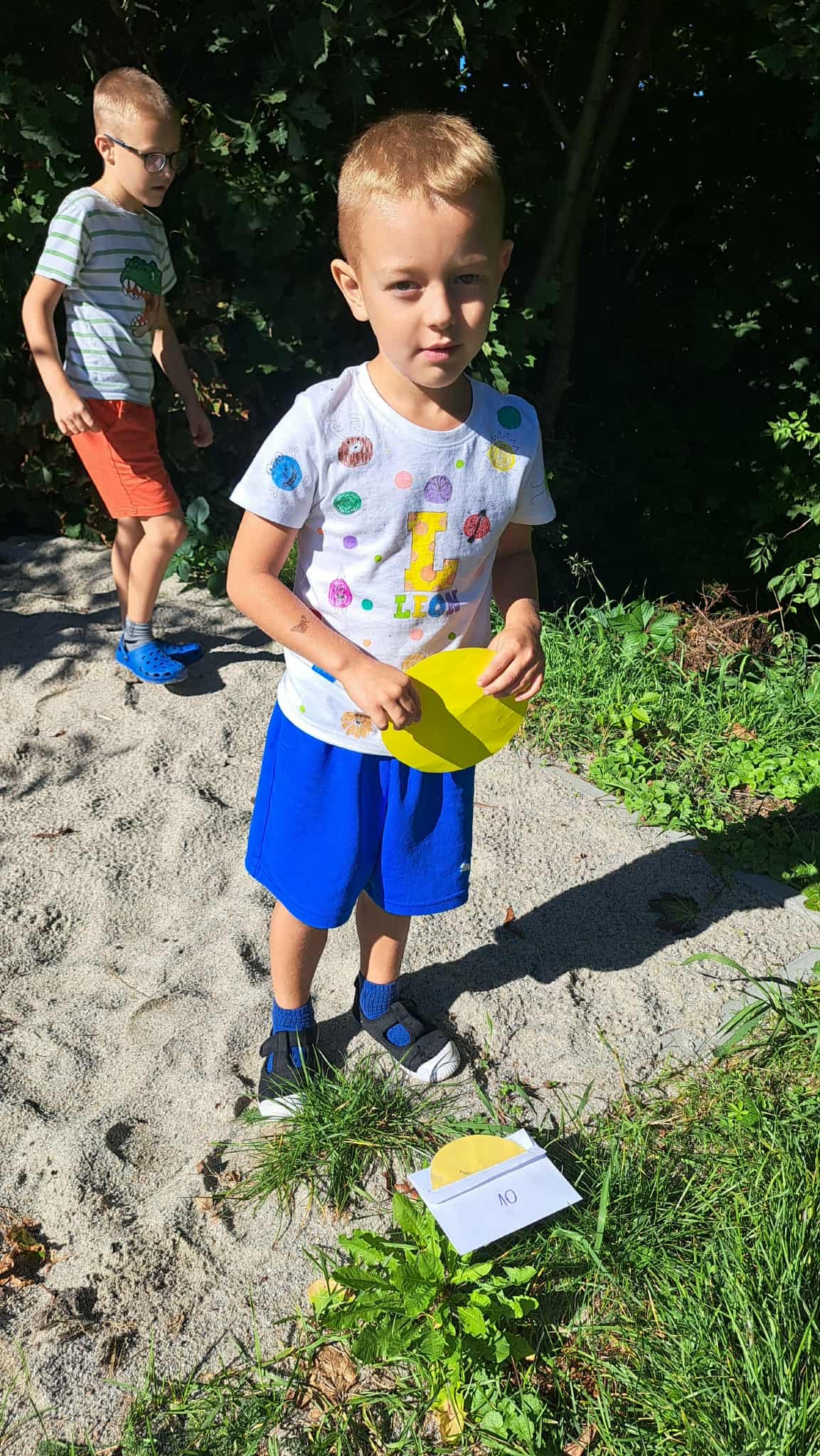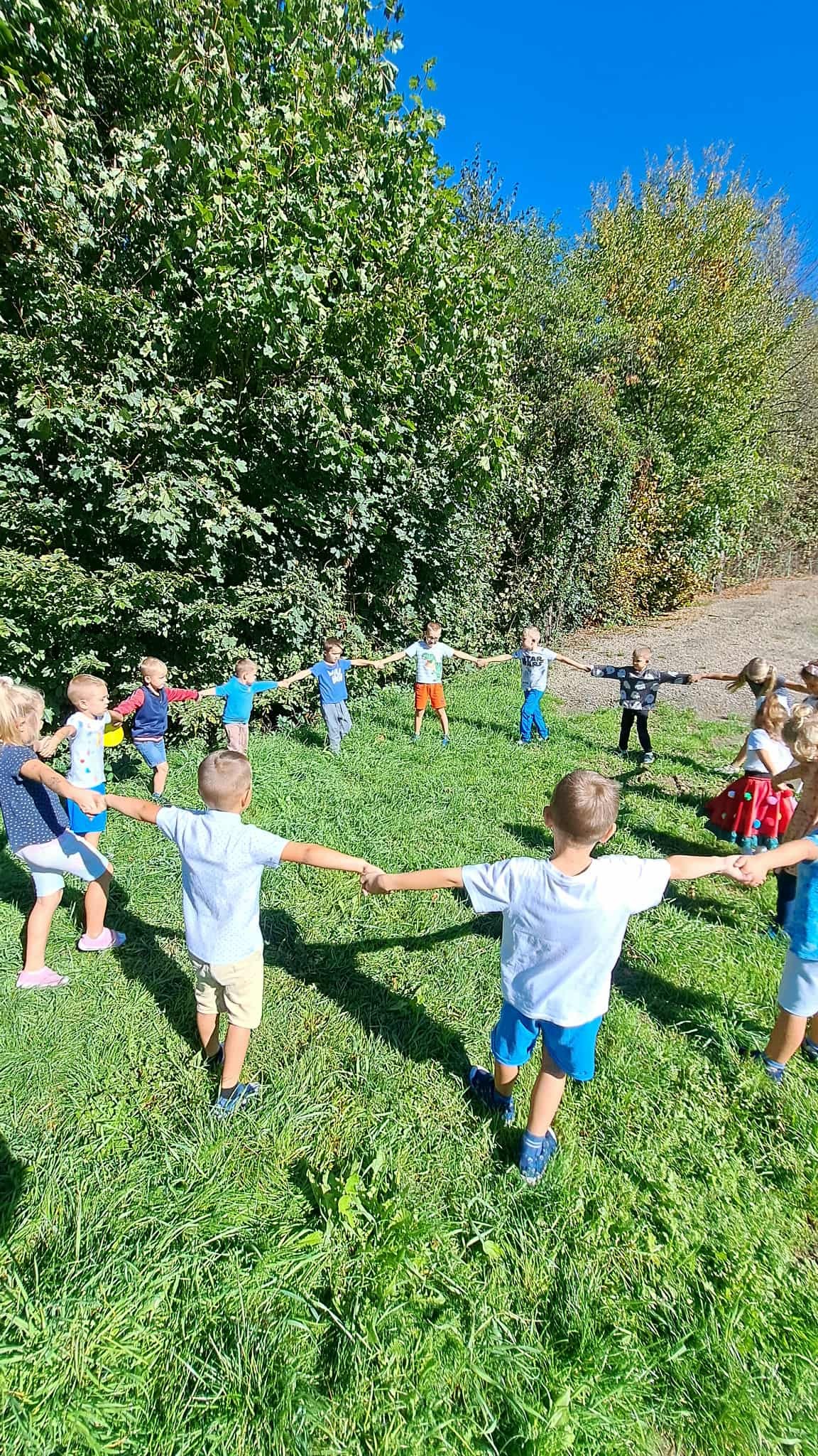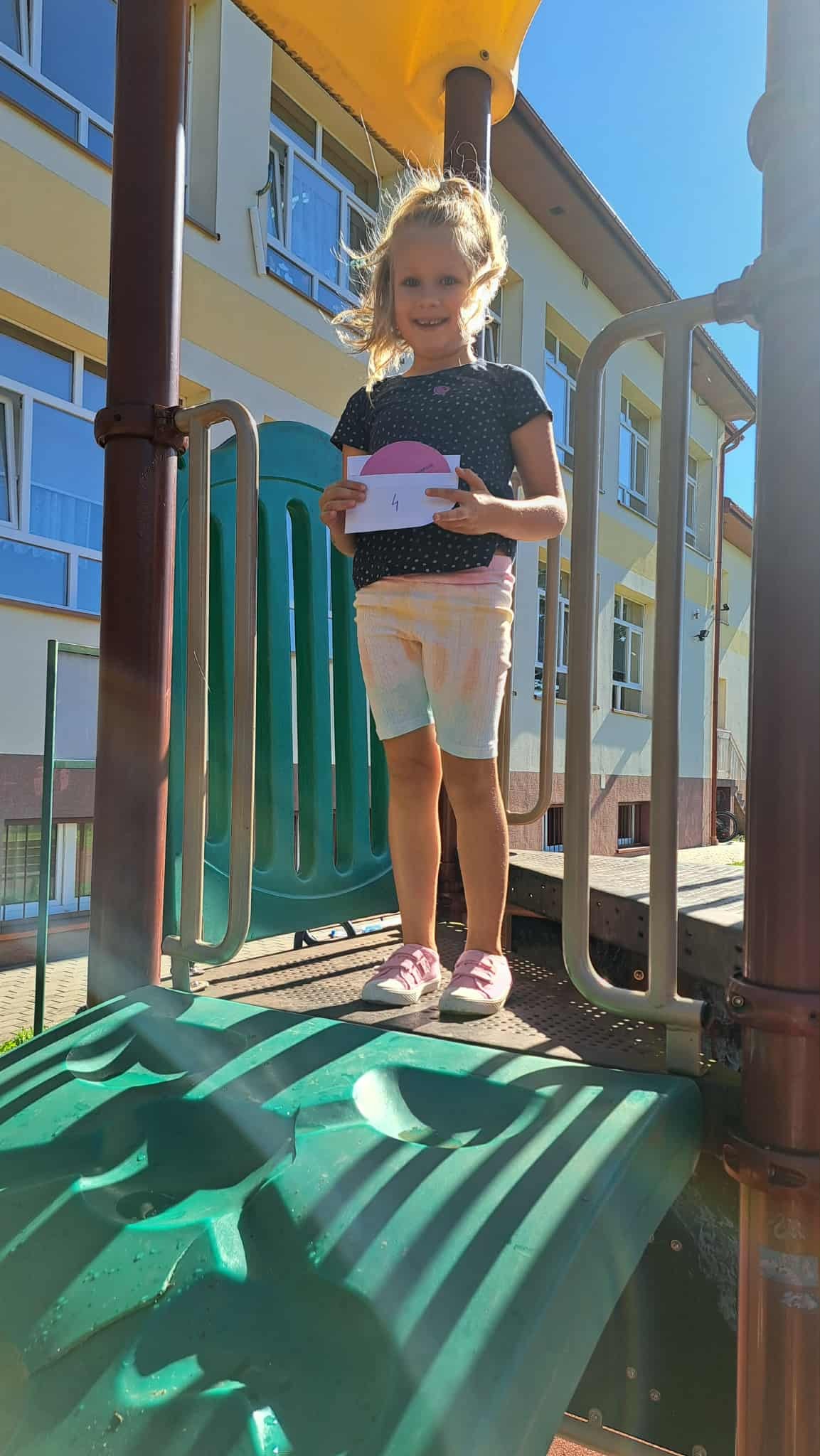 Wyruszyliśmy w grę terenową, w której dzieci szukały ukrytych kropek i wykonywały zadania.