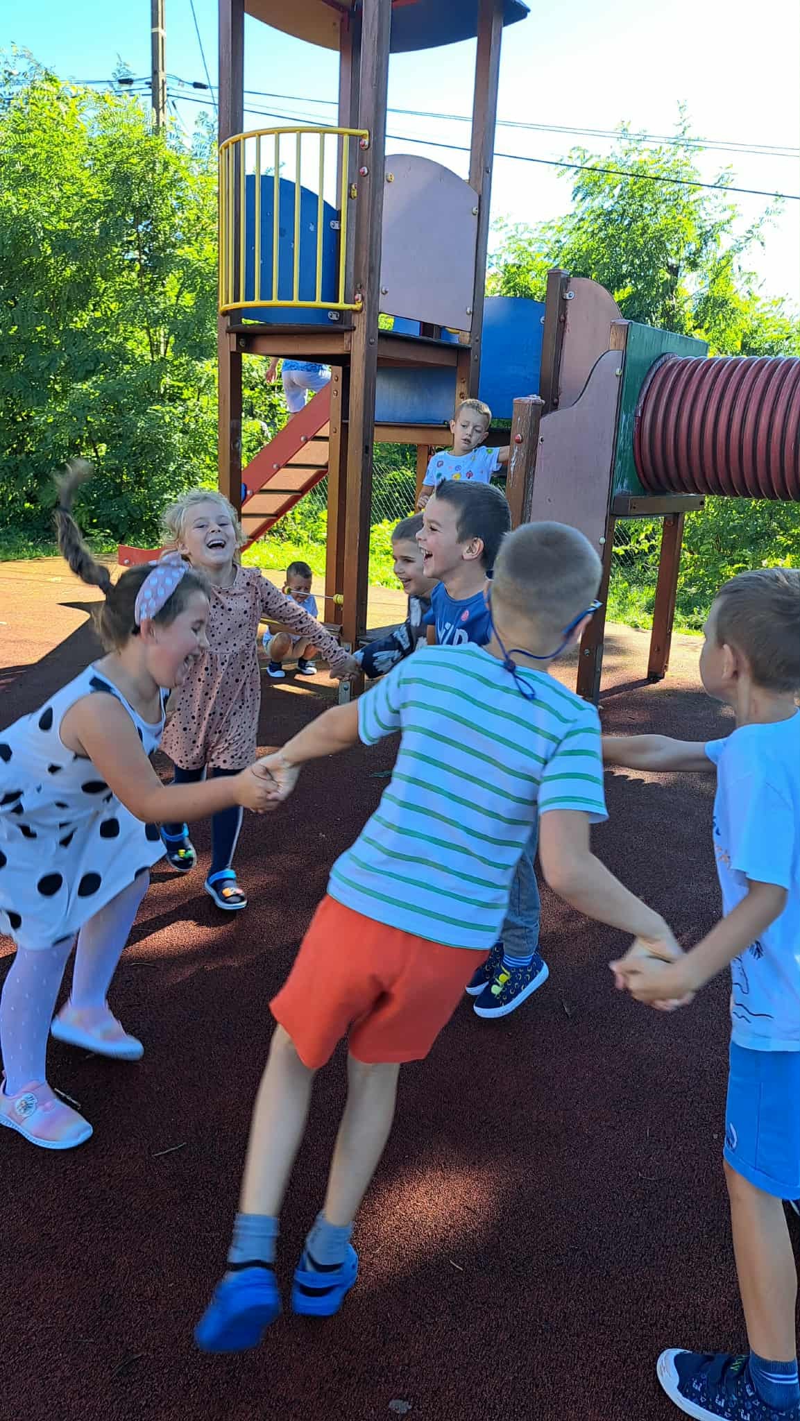 Były też wesołe zabawy ruchowe, które rozwijały współpracę i pomysłowość.
