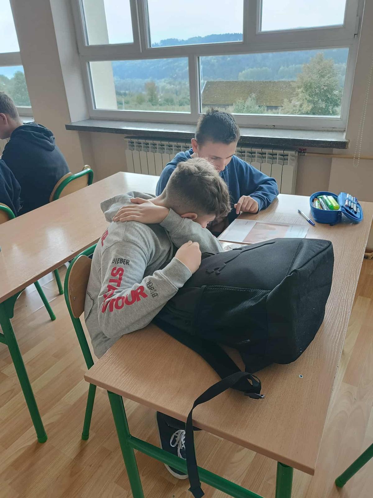 W ramach "Tygodnia przeciwdziałania przemocy rówieśniczej" uczniowie klasy VII wzięli udział w zajęciach z psychologiem, podczas których wspólnie omówiono pierwszą pomoc dla zdrowia psychicznego. Wspólnie zastanawiano się nad sygnałami ostrzegawczymi płynącymi osób będących w kryzysie.
