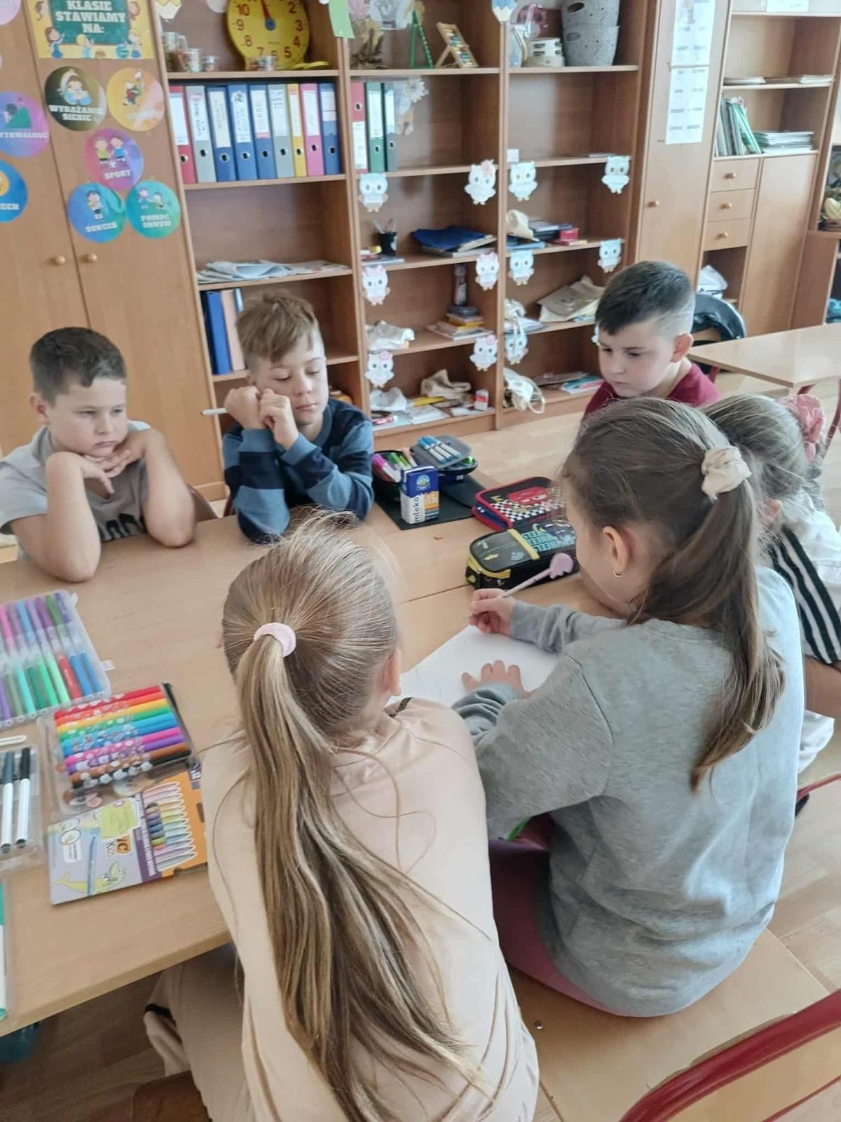 Psycholog omówiła z dziećmi historię Krzysia, który pomylił się przy czytaniu polecenia podczas lekcji i był wyśmiany przez kolegę z klasy. Omówiono wspólnie zasady komunikacji.