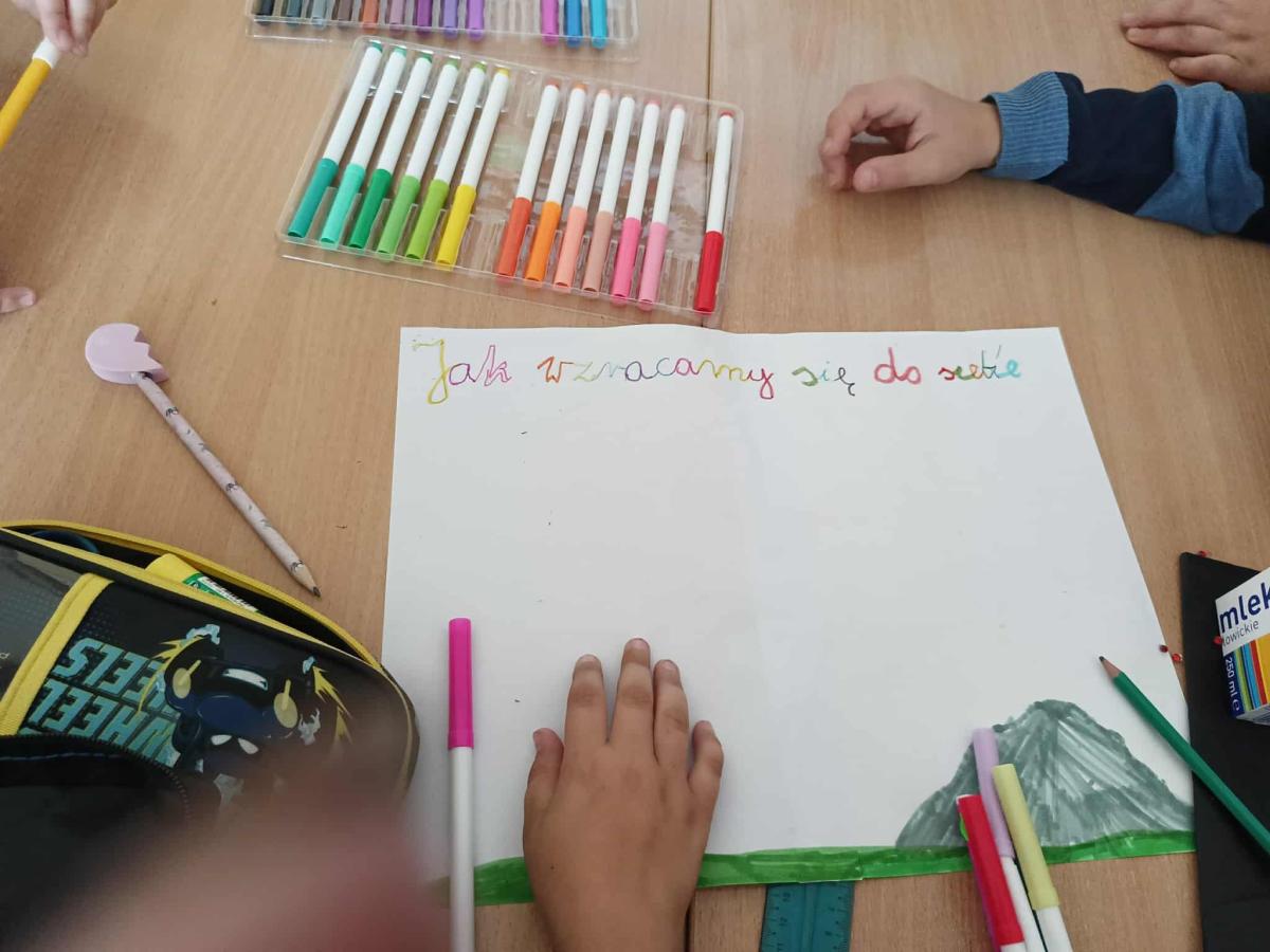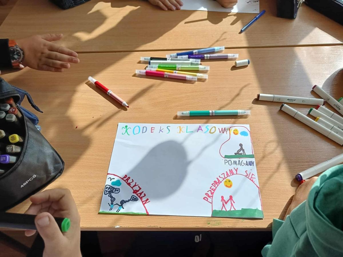 Na koniec zajęć uczniowie stworzyli plakaty dotyczące zasad klasowych - gdzie hasłem przewodnim był szacunek i przyjaźń.