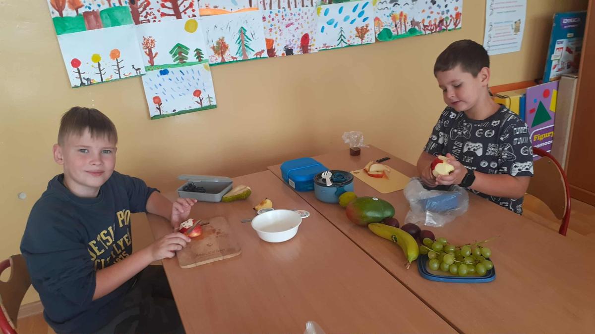 16.10 w klasie 3 czuć było aromaty jesieni. Uczniowie na zajęciach edukacji technicznej wykonały jesienną sałatkę owocową, którą potem ze smakiem skonsumowali.