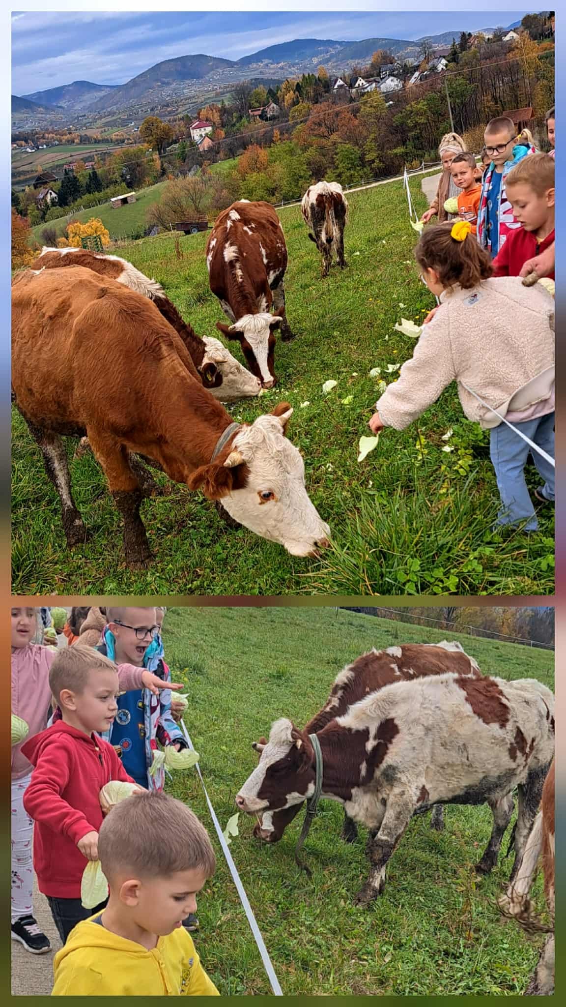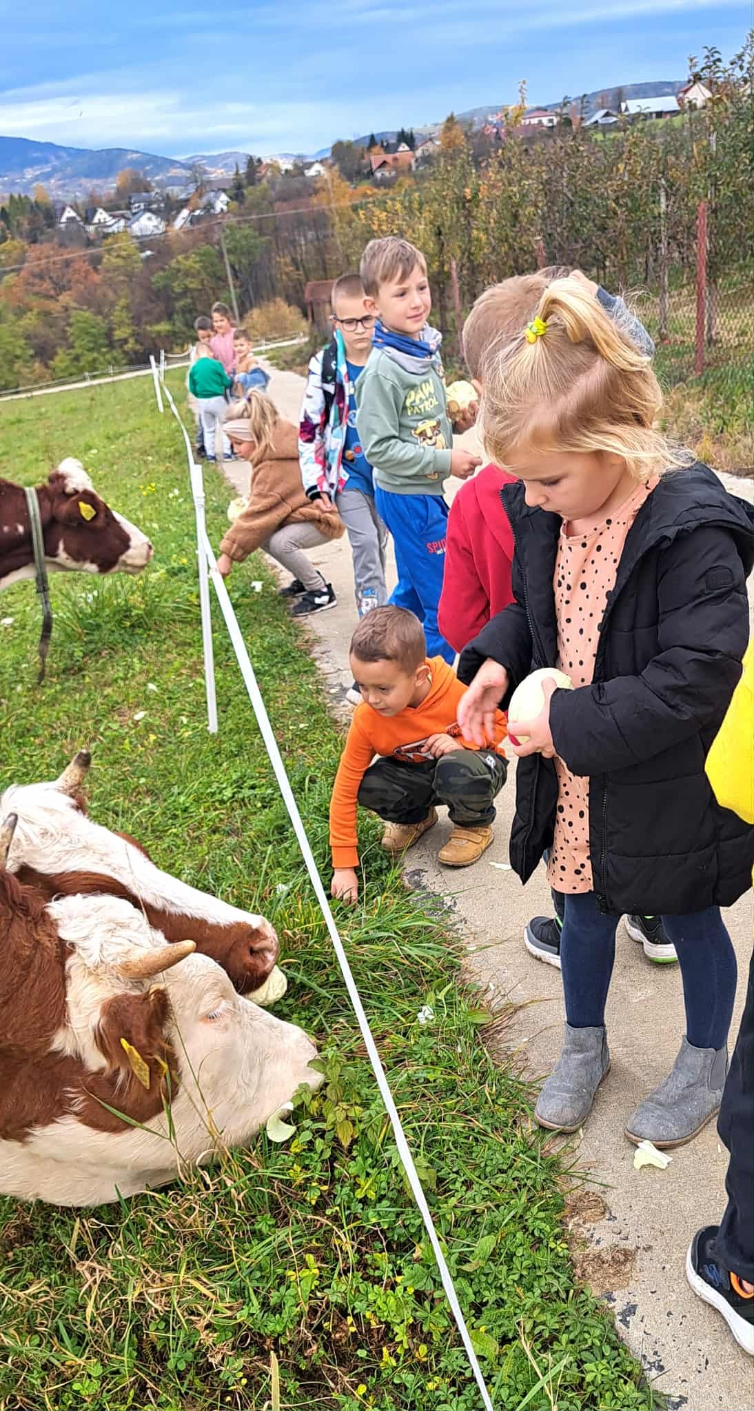 Przedszkolaki mogły z bliska zobaczyć zwierzęta gospodarskie, a także samodzielnie je nakarmić. Radość i emocje były ogromne – szczególnie podczas karmienia owiec i krów! Taki bezpośredni kontakt ze zwierzętami to dla dzieci niezapomniane przeżycie oraz doskonała lekcja empatii i szacunku do przyrody.