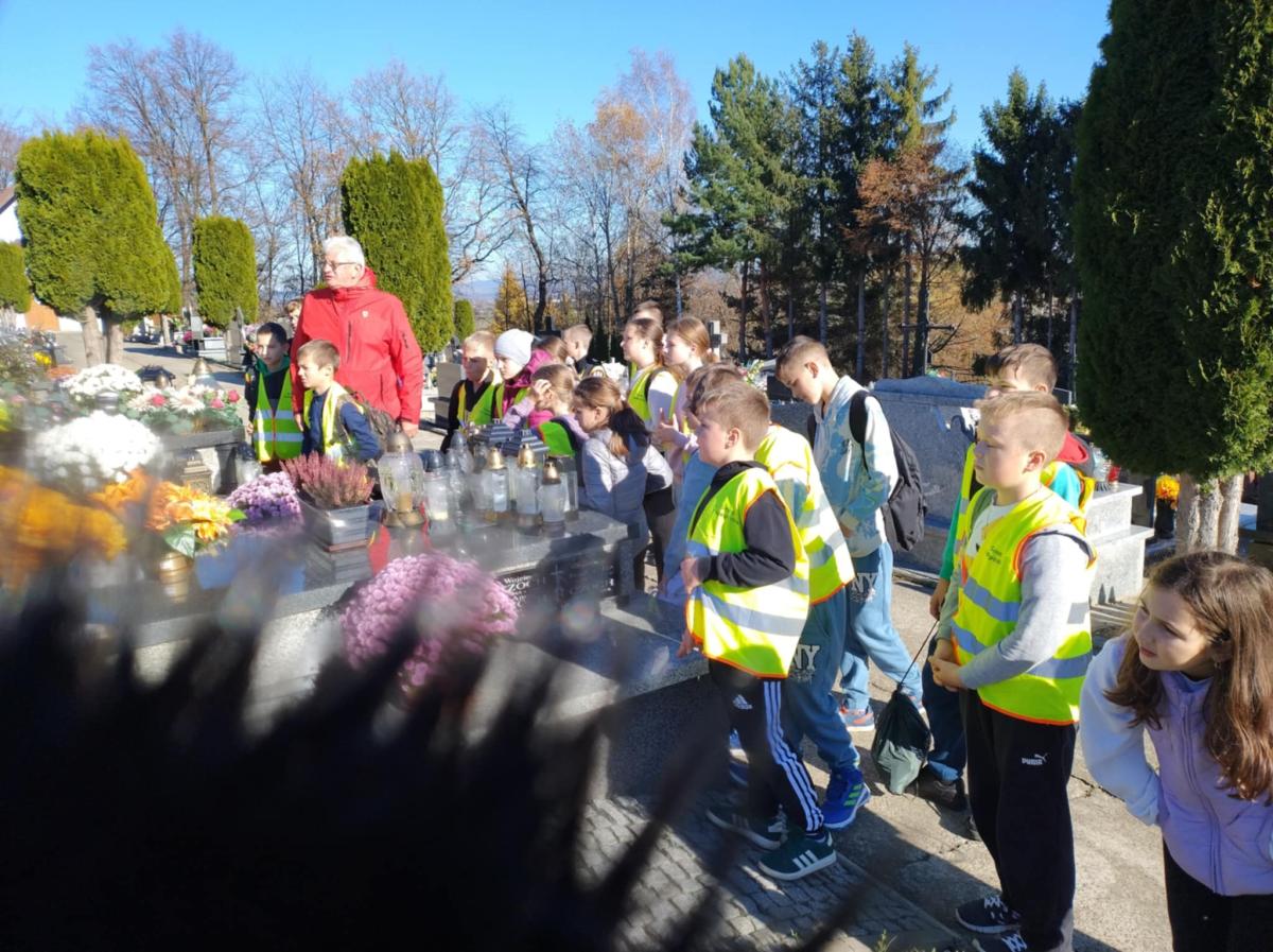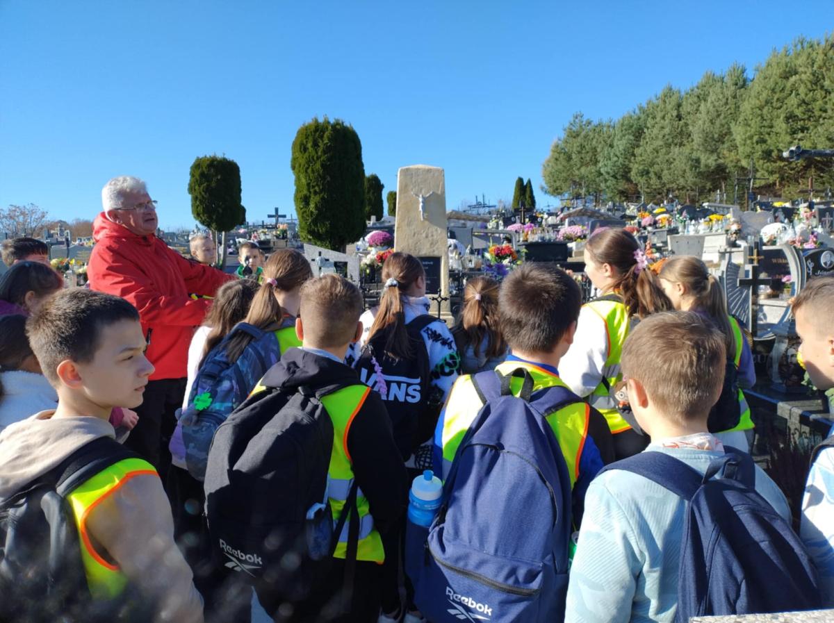 Czwarto i piątoklasiści zapoznali się z historią przydrożnych kapliczek, zapalili znicze na grobach nieżyjących nauczycieli i pracowników naszej Szkoły oraz na grobie rodziny Reklewskich.