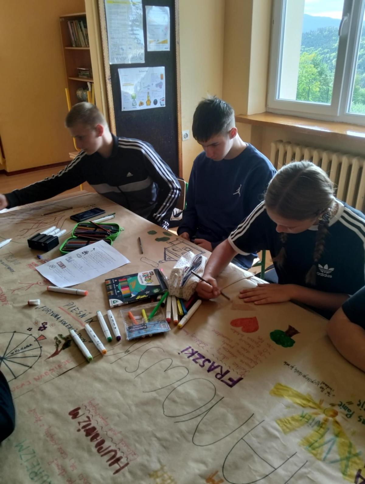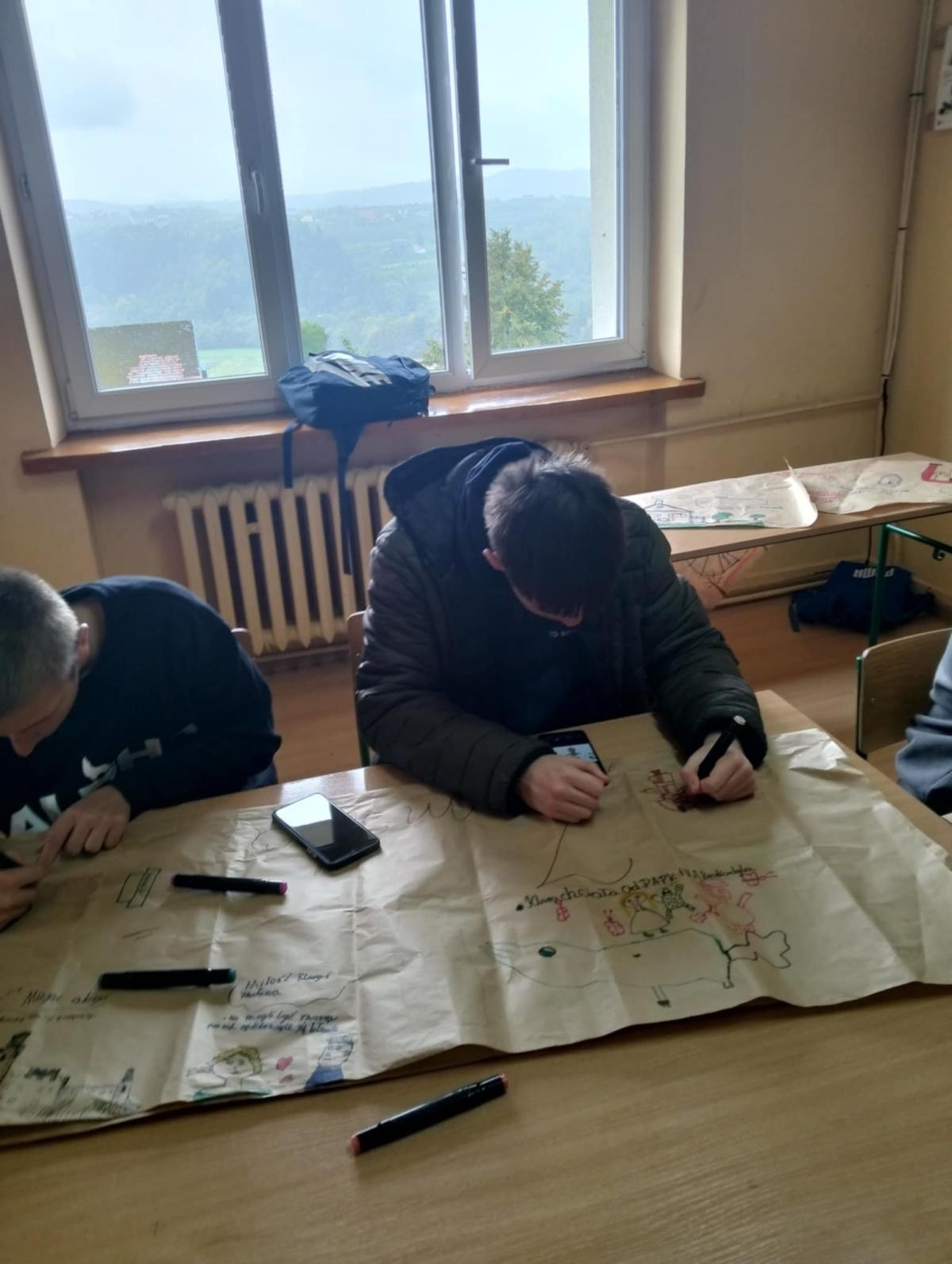 Drukuj Powrót do poprzedniej strony Lekcja języka polskiego 07.11.2025 8:33 Treść Uczniowie klasy ósmej przygotowują się do egzaminu z języka polskiego, łącząc naukę z twórczymi działaniami.Podczas zajęć 6 listopada powstają ciekawie i kreatywne projekty inspirowane lekturami szkolnymi.