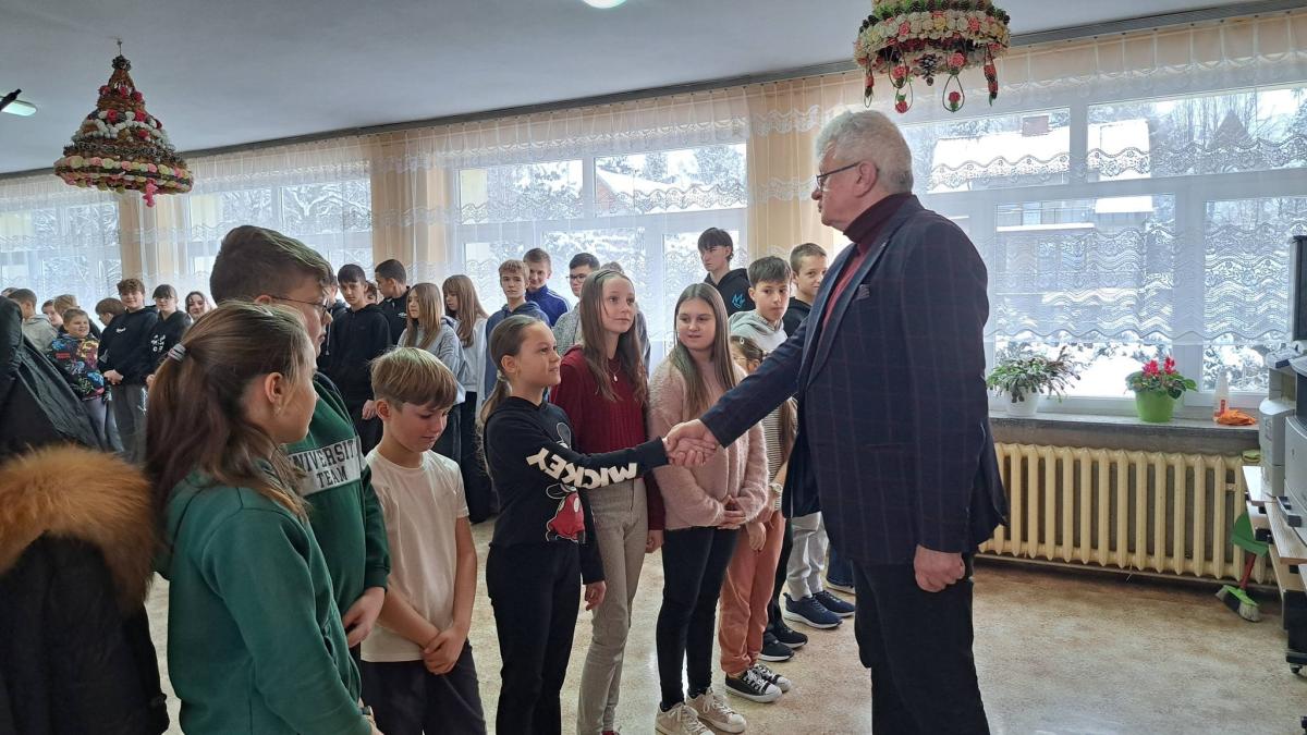 W dalszej części Pan Dyrektor pogratulował uczniom, którzy śpiewem i grą na instrumentach uświetnili Pasterkę oraz Uroczystość Bożego Narodzenia w Naszacowicach i Podegrodziu.
