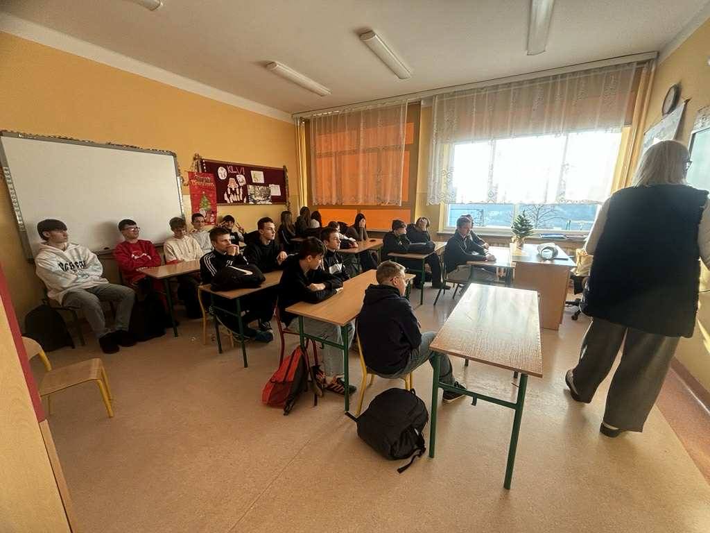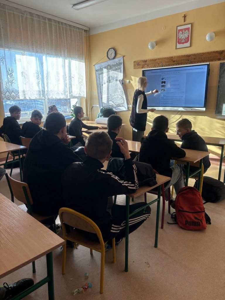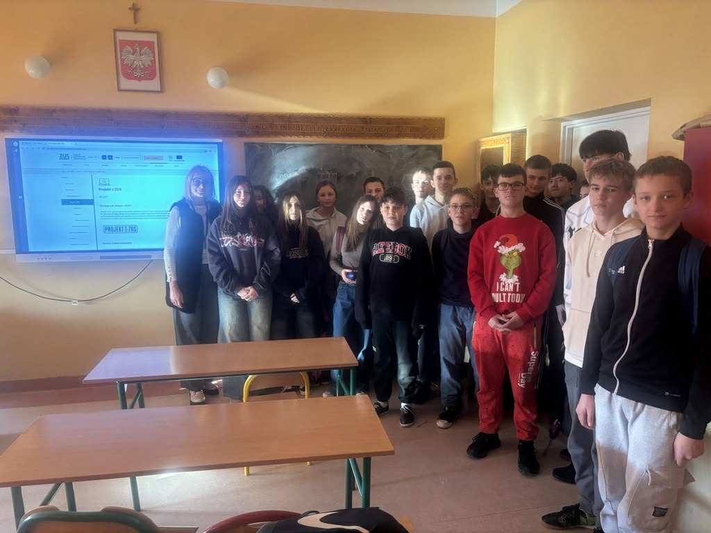 19.01.2026 r. w naszej szkole gościliśmy pracownika Zakładu Ubezpieczeń Społecznych, który spotkał się z uczniami 7 i 8 klasy. Podczas zorganizowanych zajęć uczniowie dowiedzieli się o podstawowych zagadnieniach związanych z systemem ubezpieczeń społecznych, potrzebie ubezpieczeń społecznych oraz istocie pracy jako pracownik biurowy.