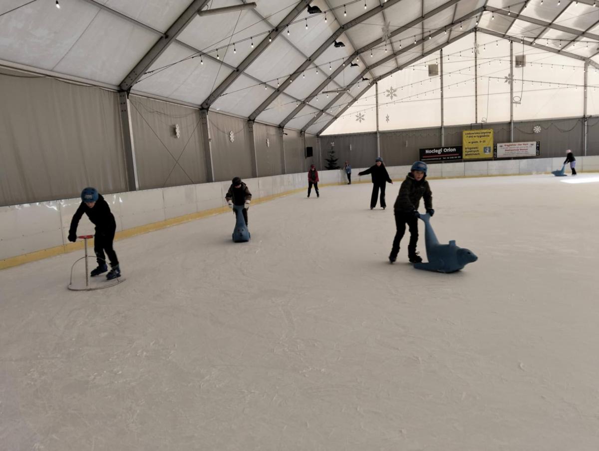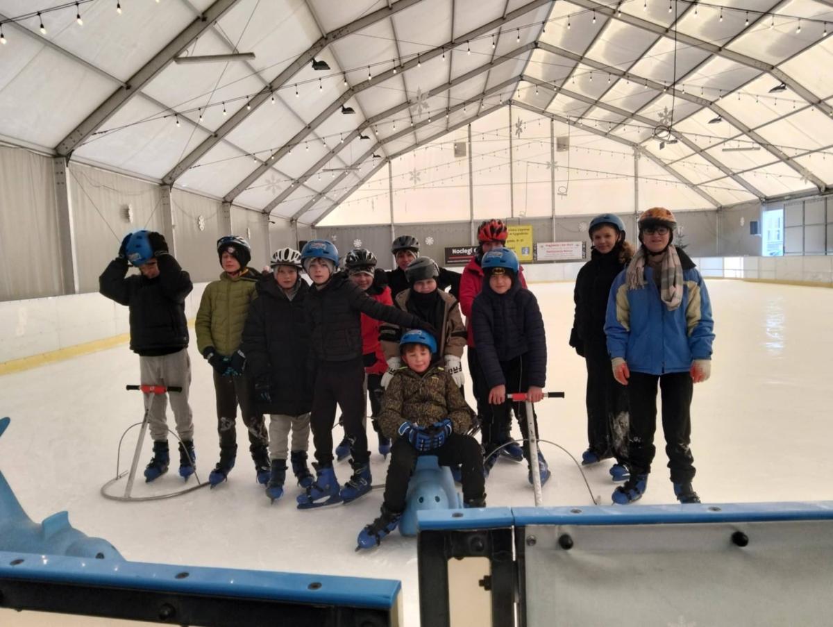 , aktywności ruchowej i wspólnej zabawy. Dla niektórych uczniów był to pierwszy kontakt z jazdą na łyżwach.