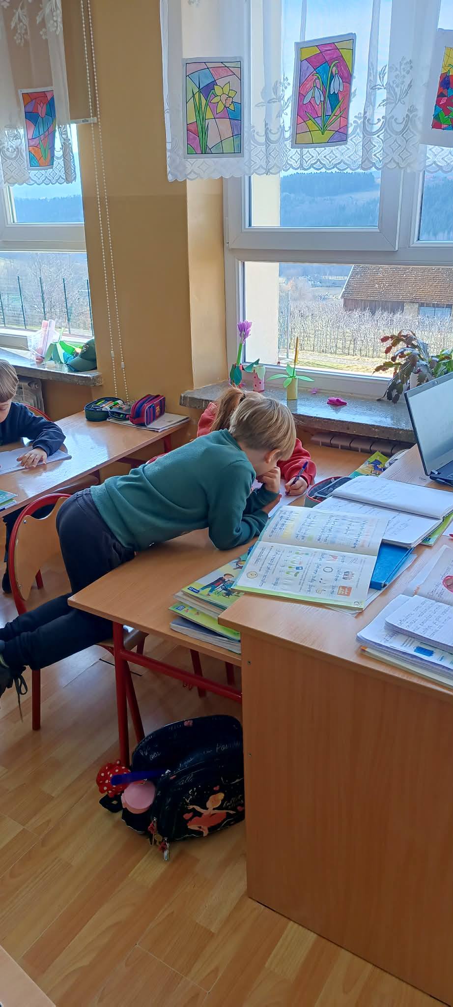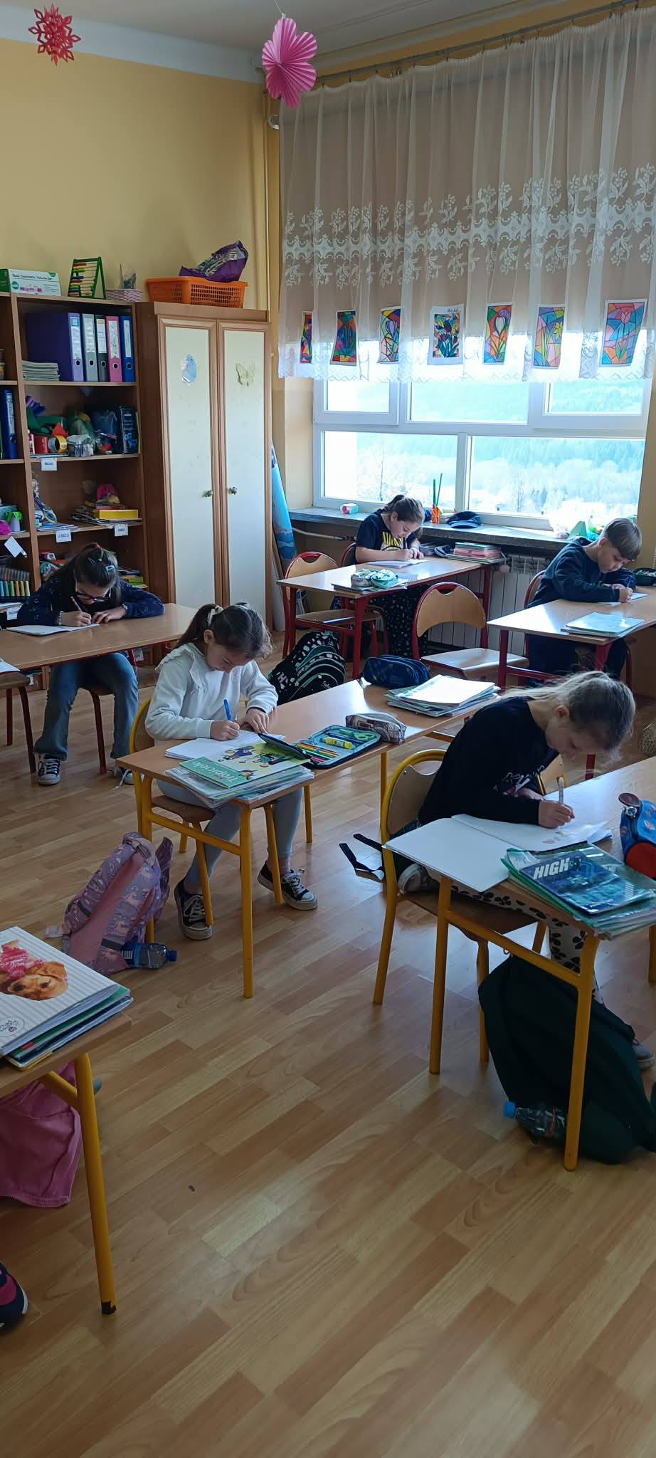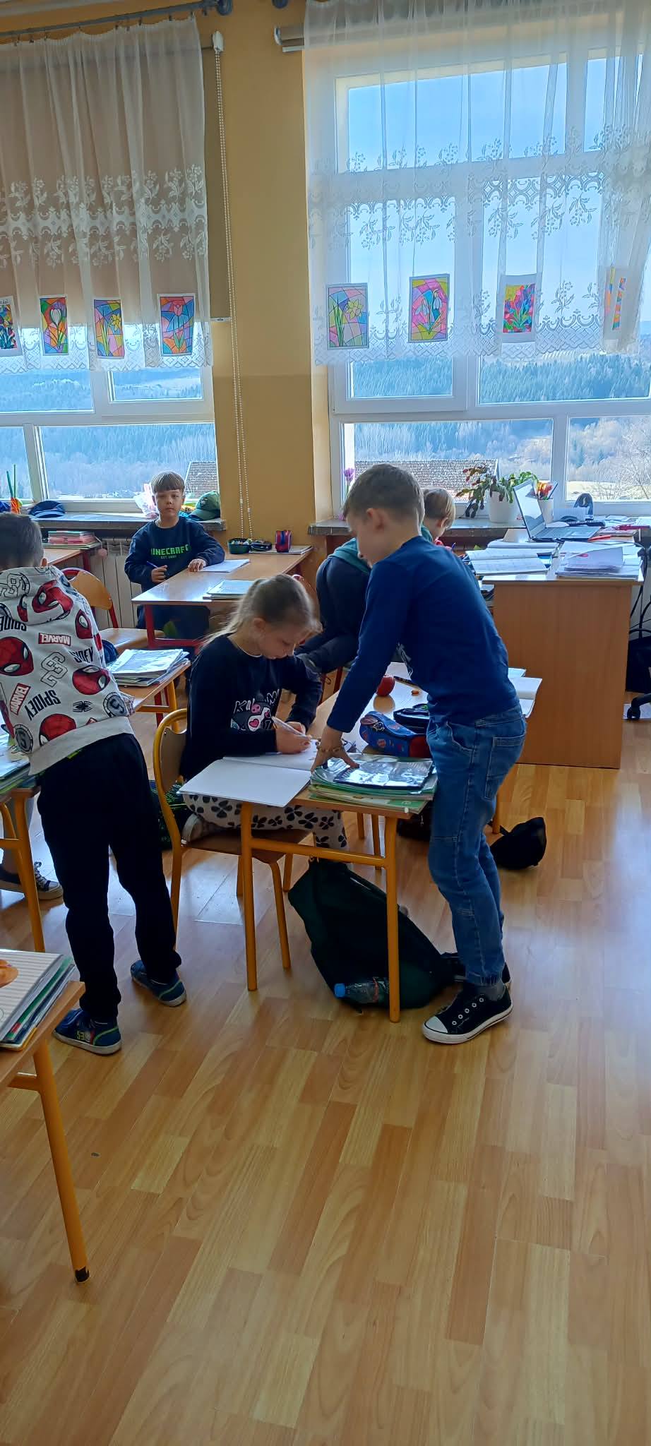 Klasa 2 udowadnia, że wcale nie! Uczniowie wzięli udział w dyktandzie bieganym . Zadanie polegało na odczytywaniu fragmentów tekstu i zapamiętywaniu ich, a następnie przekazaniu osobie piszącej.