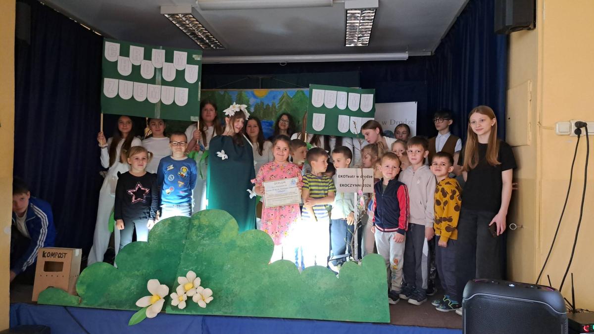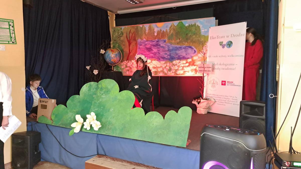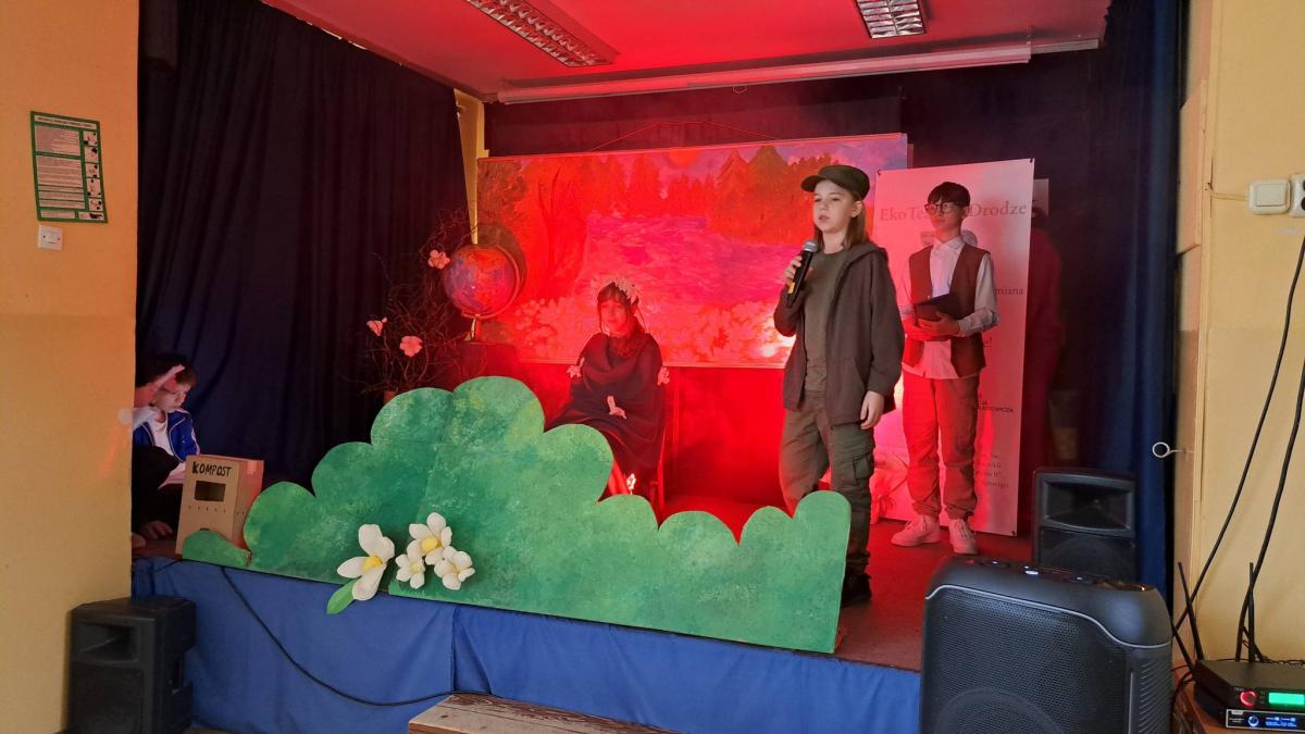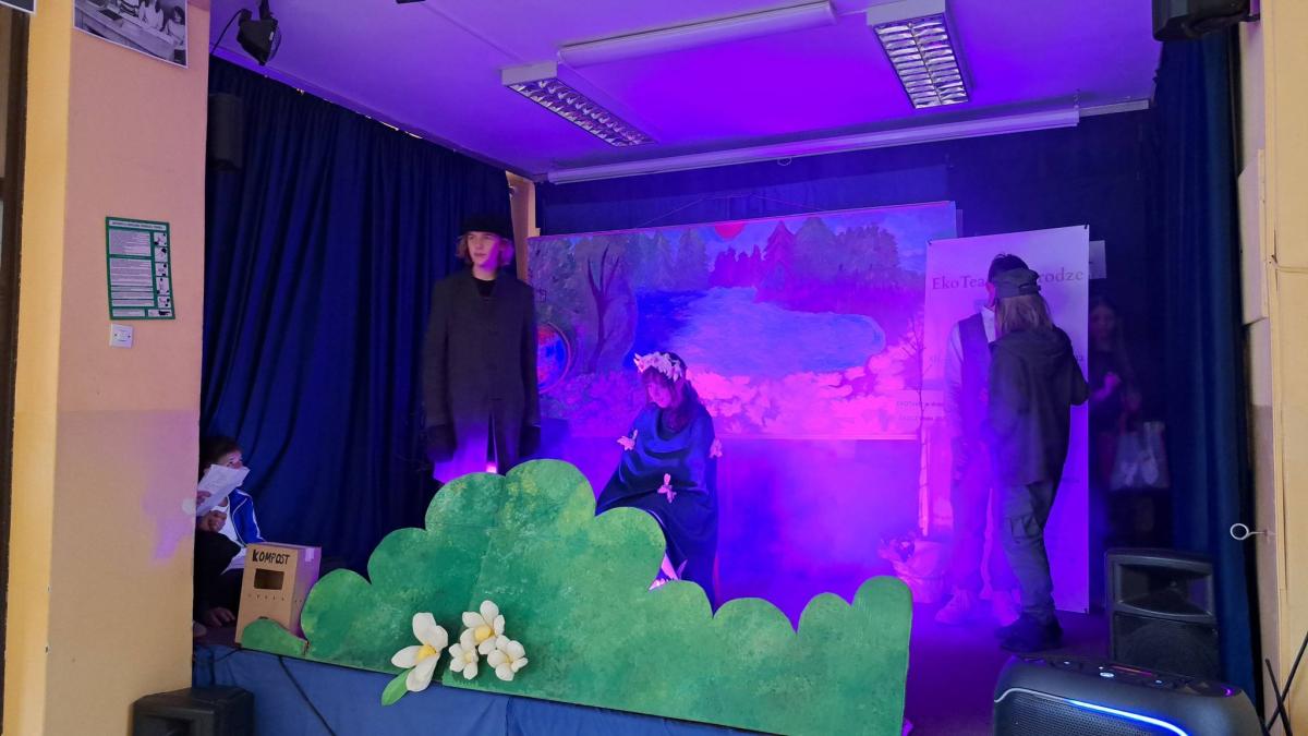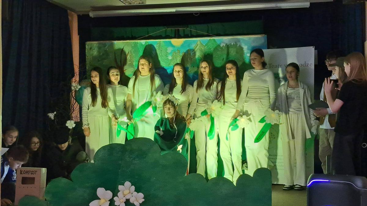 Młodzi aktorzy pod czujnym okiem p. Ani przygotowali dla nas wyjątkowe przedstawienie poświęcone tematyce ekologii .