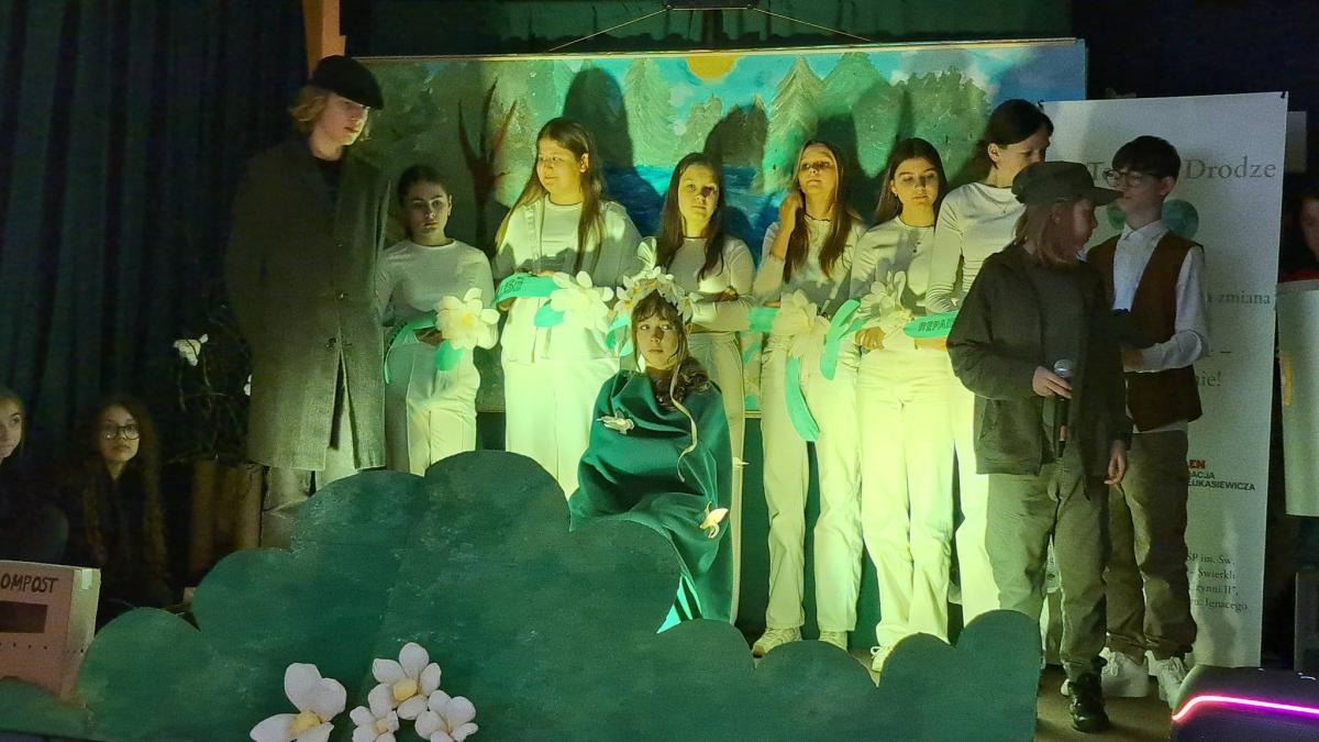 Młodzi artyści zachwycili nie tylko świetnym przygotowaniem, ale także ogromnym talentem, zaangażowaniem i naturalną swobodą sceniczną. Ich występ był nie tylko ciekawy i pełen pozytywnej energii, ale przede wszystkim niósł ze sobą ważny i potrzebny przekaz o trosce o naszą planetę. Widać było, że włożyli w to serce – a efekt naprawdę robił wrażenie!