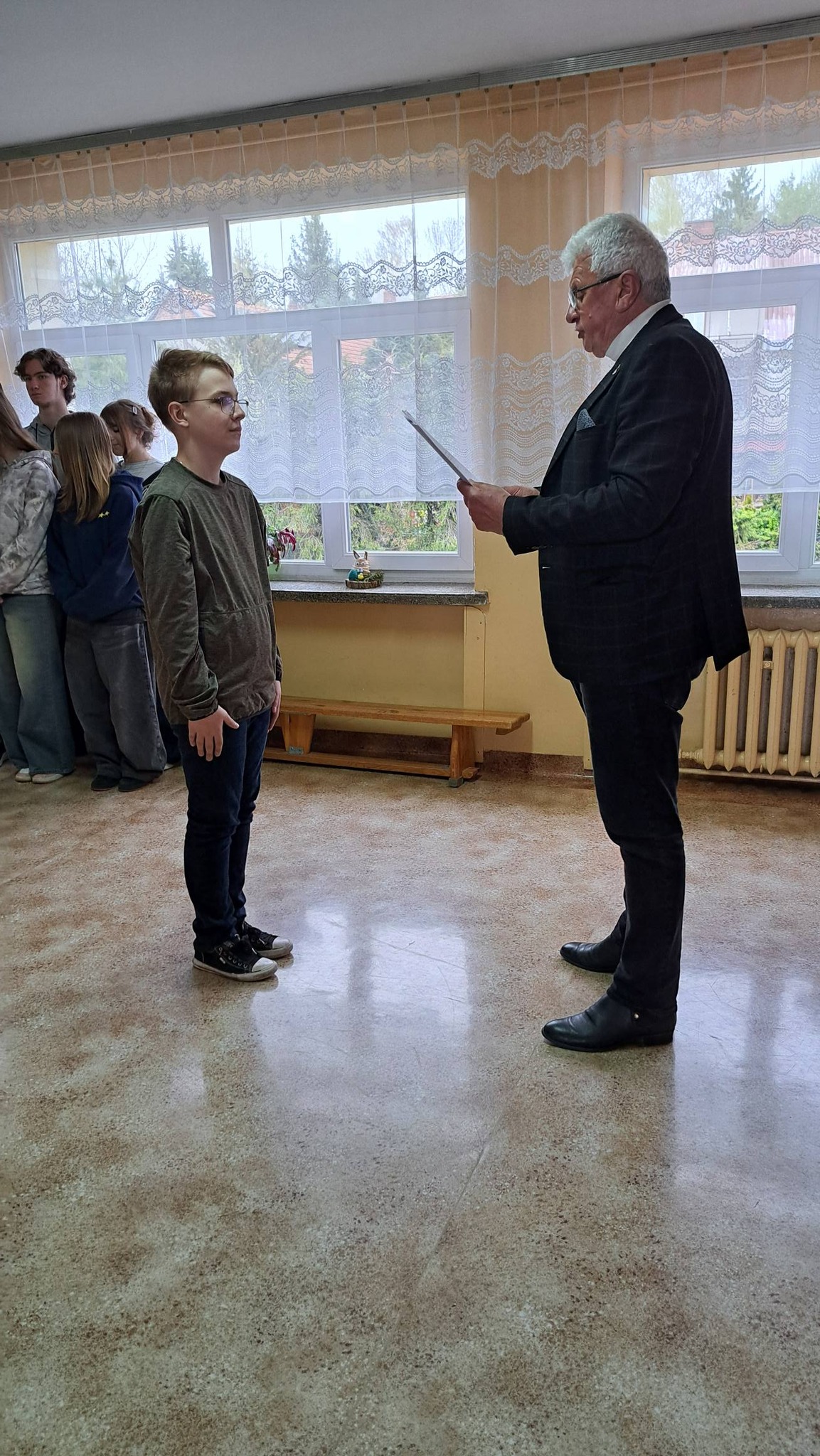 Pan Dyrektor pogratulował także uczniom klasy VIII, którzy w dniu dzisiejszym przyjmują sakrament bierzmowania